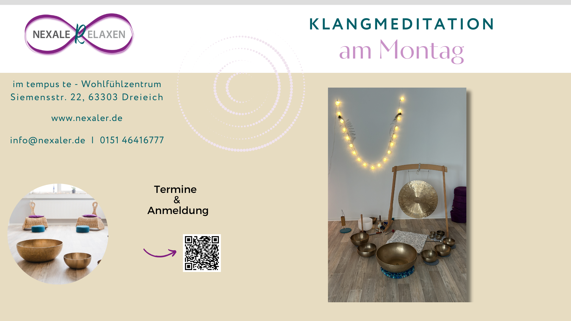 Nach einem vielleicht anstrengenden Tag darfst Du einfach da sein. Die feinen Klangschwingungen der Klangschalenbreiten sich im Raum aus, erfüllen jede Zelle Deines Körpers und helfen Dir, Spannungen zu lösen. Du hörst die Klänge nicht nur – Du spürst sie tief in Dir. So entsteht eine wohltuende Tiefenentspannung, die Körper, Geist und Seele harmonisiert.